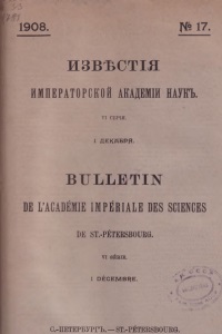 1908. N° 17. извъстгя ИМПЕРАТОРСКОЙ АКАДЕМЫ ИАУКЪ. VI СЕРИ. 1 ДЕКАБРЯВГГЪЬЕТШ ПЕ КАСА0ЁМ1Е 1МРЕВШЕ ВЕ8 8С1ЕИСЕ8 РЕ 8Т.-РЁТЕВ8ВОЦВ0. VI 8ЙВ1Е. 1 ОЁСЕМВКЕ. С.-ПЕТЕРБУРГЪ. — 8Т.-РЁТЕВ8ВОИВСК